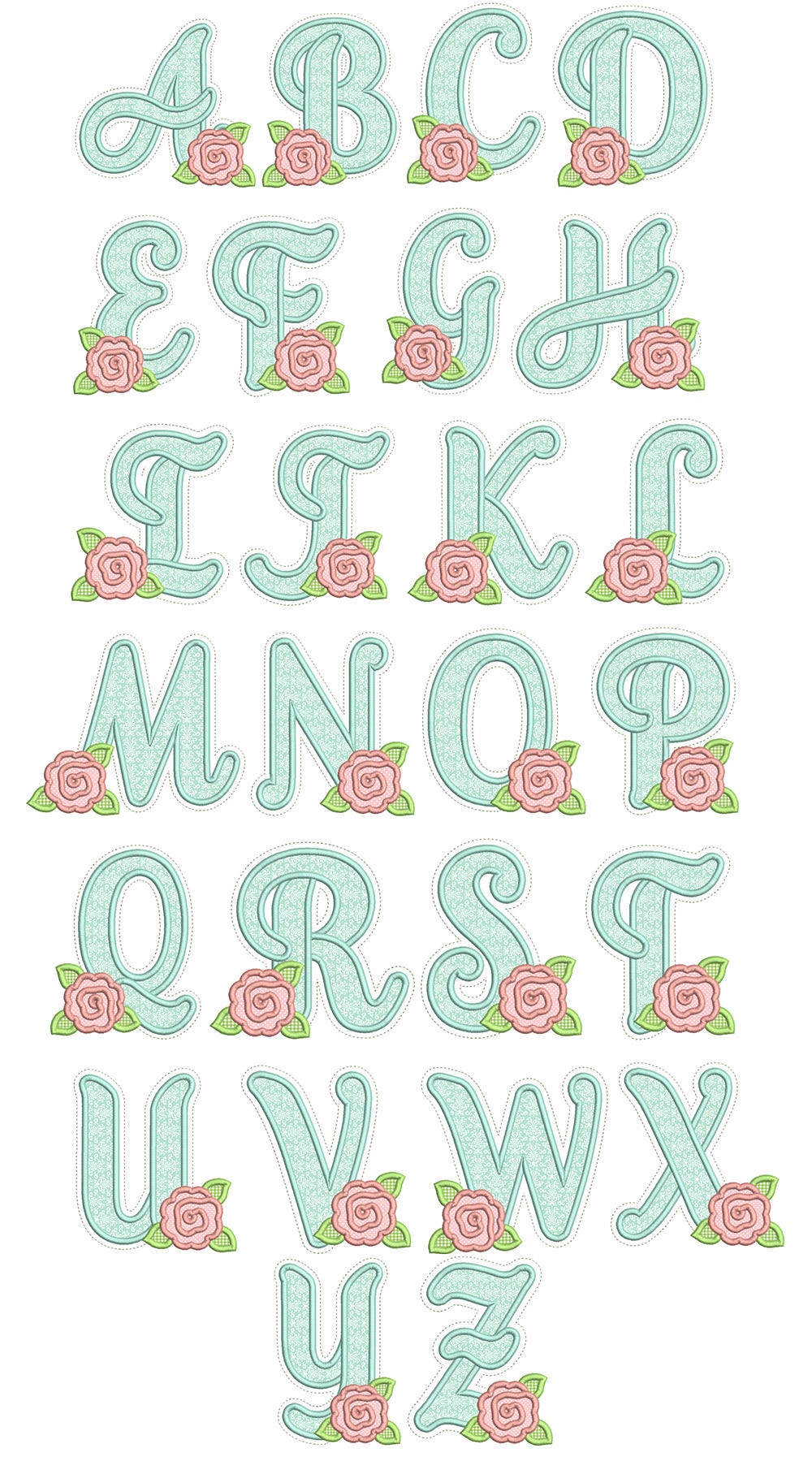 A sweet, chic, and fresh applique alphabet perfect for a wide variety of embellishments!