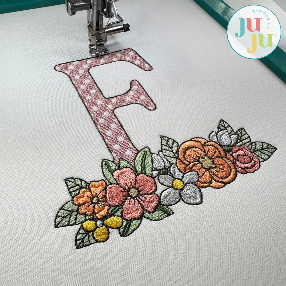 Add some fancy floral charm to your stitching projects with our embroidery-only Floral Bouquet Monogram!