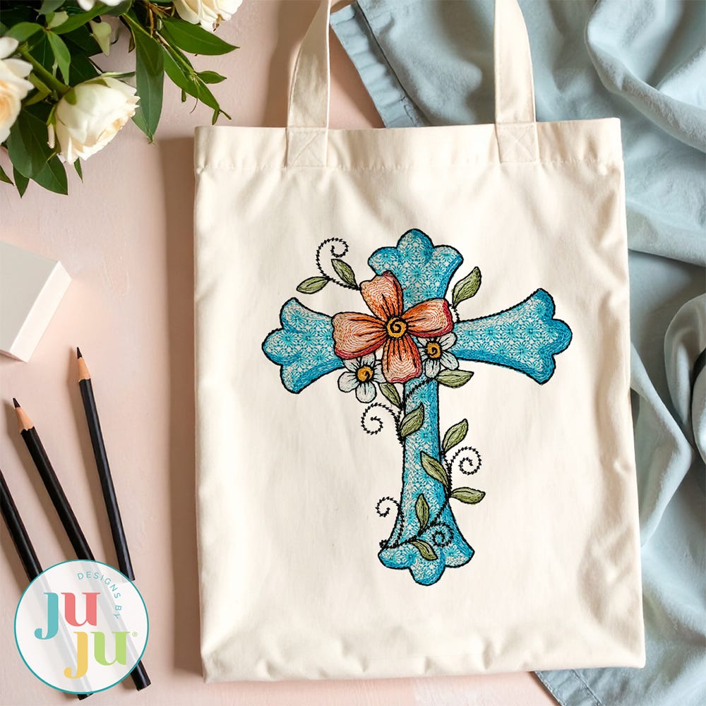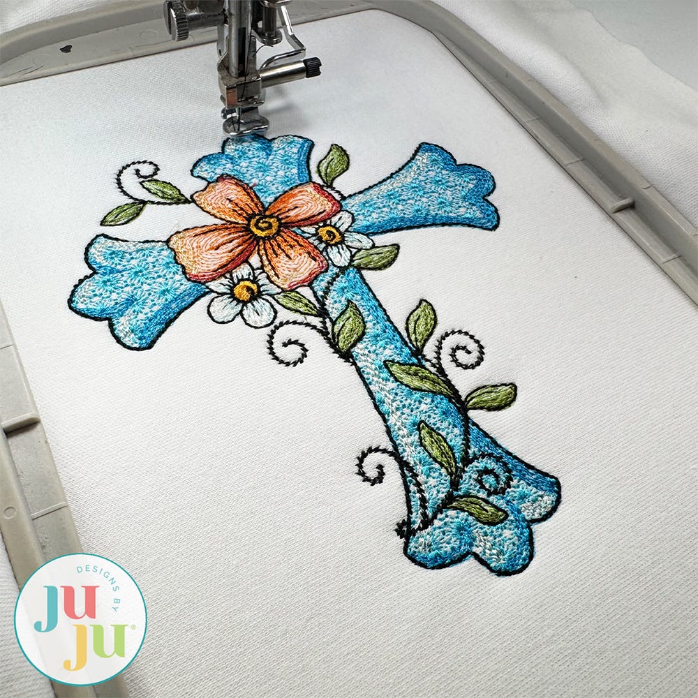 Bring your faith to life with the delicate charm of Floral Cross 3. This detailed embroidery-only design makes a lovely addition to Easter projects or any spiritual keepsake