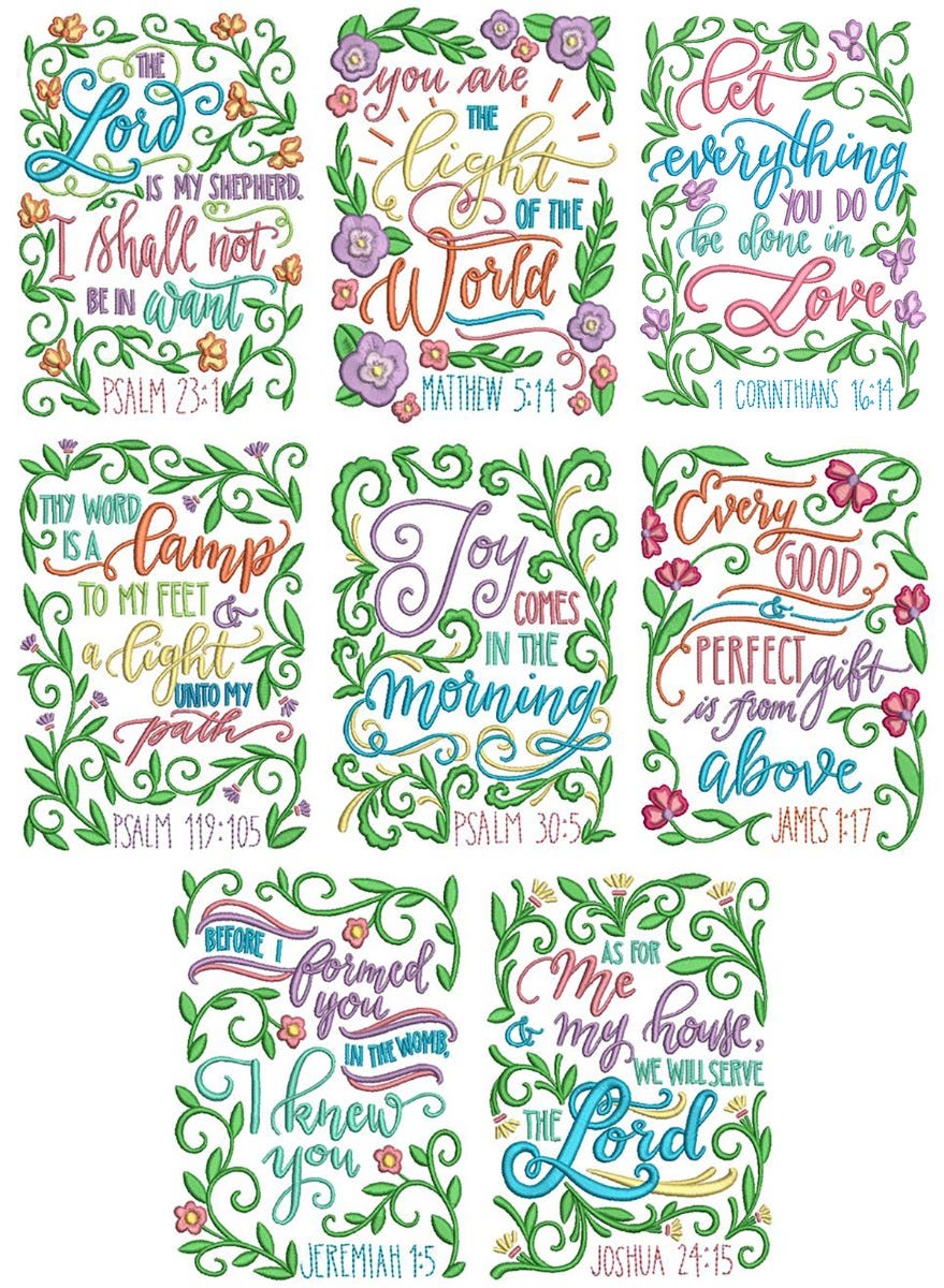 8 more beautiful floral scripture themed embroidery designs