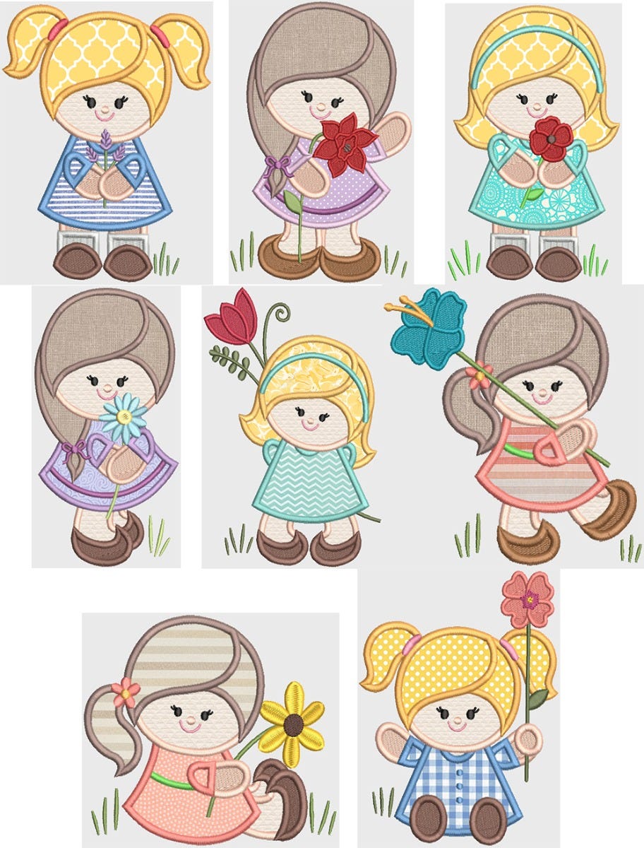 8 sweet flower girls in applique!