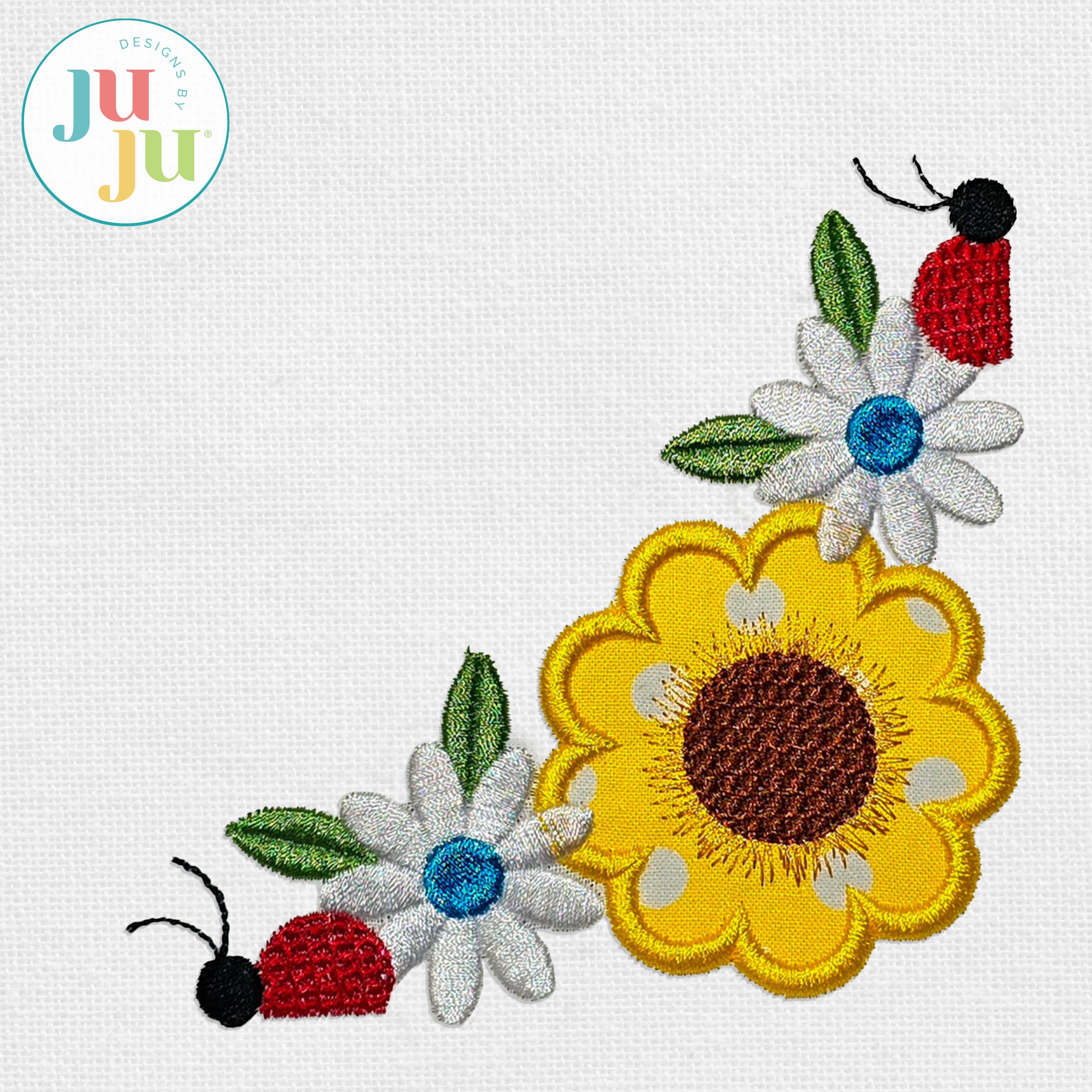 Embellish your items with a splash of Spring style! Our Flowers and Ladybug Corner design is perfect for table decor and more! The 4x4 size is designed to fit napkin corners. This design features motif and satin embroidery stitching as well as applique with satin finishing stitch.