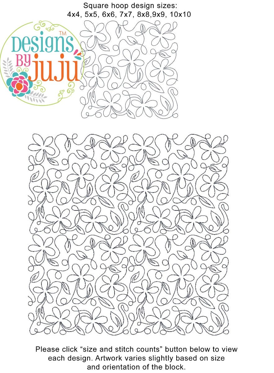 Please note: Both the scale of each pattern and arrangement of the motifs may vary based on the hoop size. Please click the "Size and Stitch Count" button to view the artwork for each size.