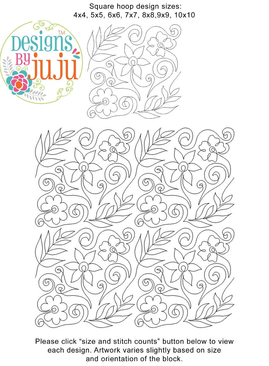 Please note: Both the scale of each pattern and arrangement of the motifs may vary based on the hoop size. Please click the "Size and Stitch Count" button to view the artwork for each size.