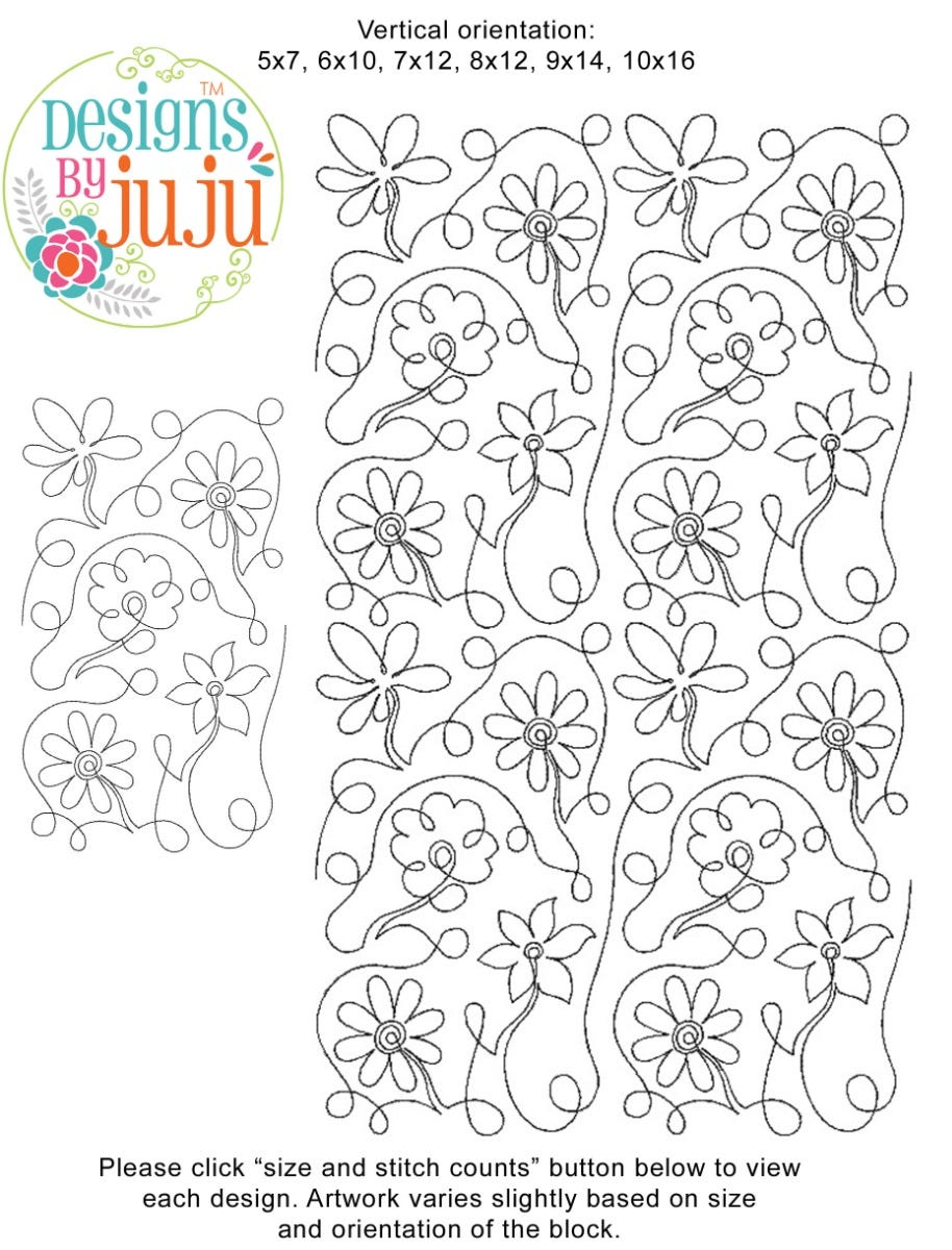 Includes continuous line single run End-to-End Quilting™ embroidery design as shown.