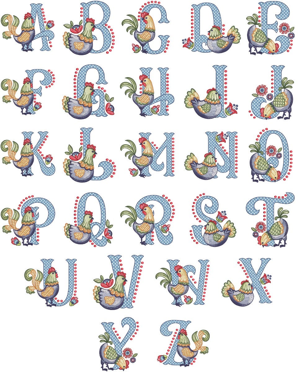 Add a touch of vintage classic style to your project with our Folkart Chicken Alphabet!