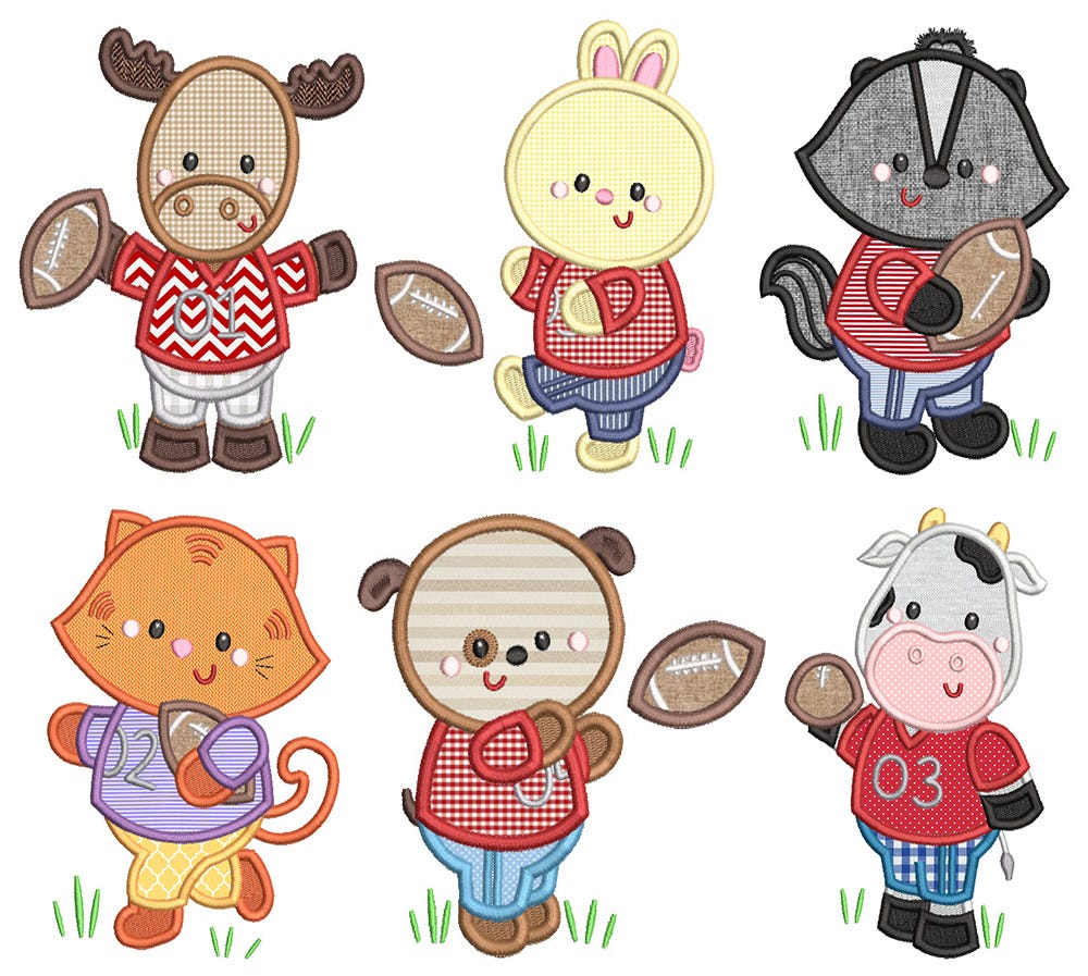 6 awesome football critters in applique!