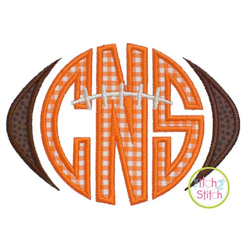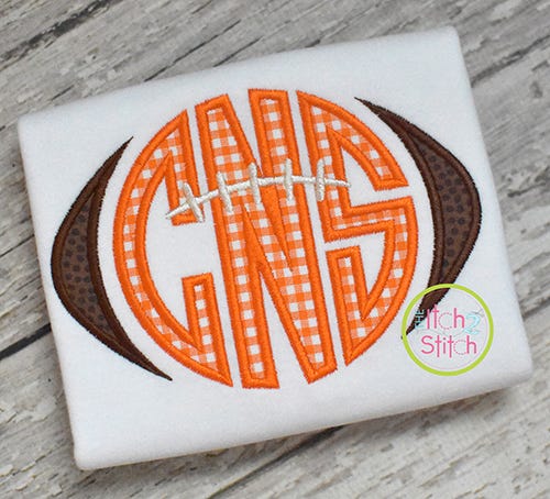 Five sizes included (for monograms sized 3.5", 4.5", 5.5", 6.5" & 7.5"). These frames are sized to coordinate with our Natural Circle Applique Monogram (#286). For example, use FootballMonogramFrameAppI2S for4_5in.pes with a 4.5" monogram. Whether you combine the monogram and frame at your machine or in software, stitch the monogram first, then the frame, aligning their centers.Ā