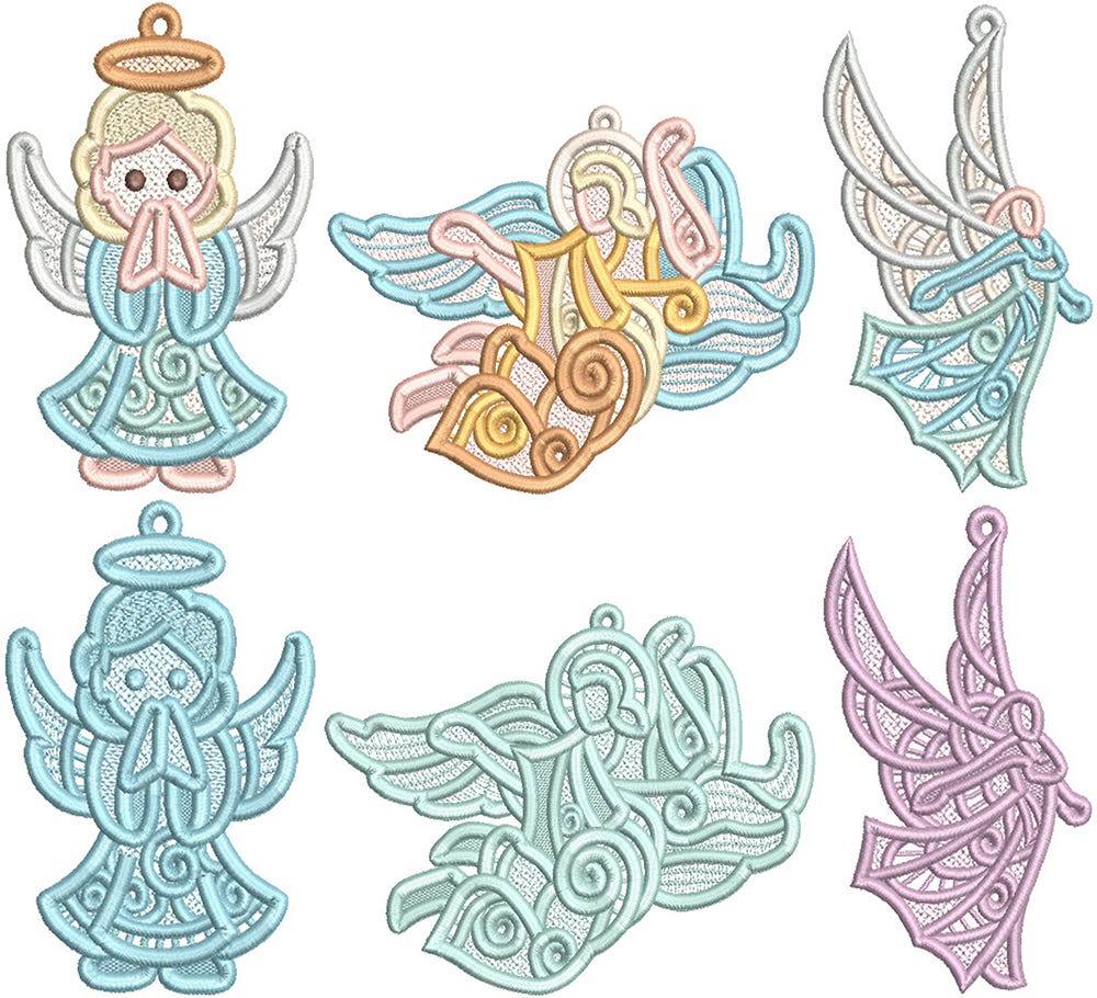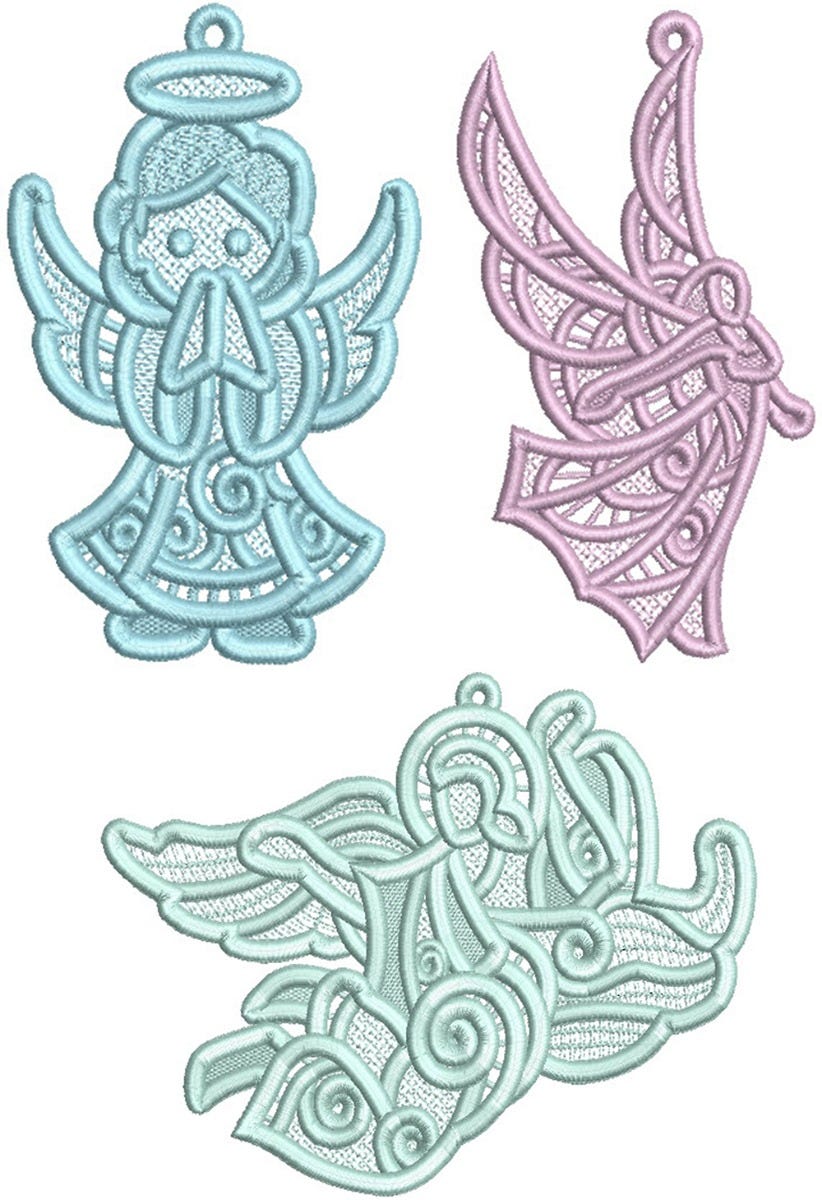 3 more elegant free standing lace angels! Includes option for single or multiple thread colors.
