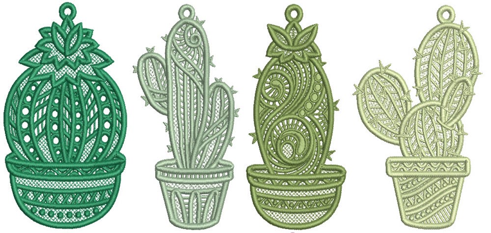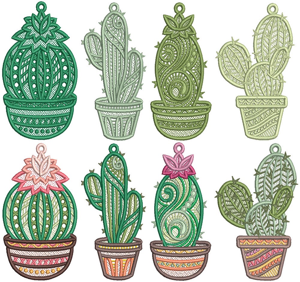 4 elegant free standing lace Cactus designs! Includes option for single or multiple thread colors.