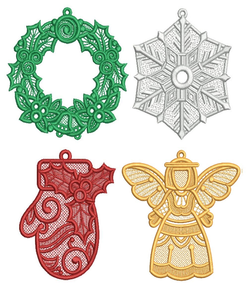 Introducing our first ever free standing lace designs! You will receive 4 different Christmas designs in three sizes each.