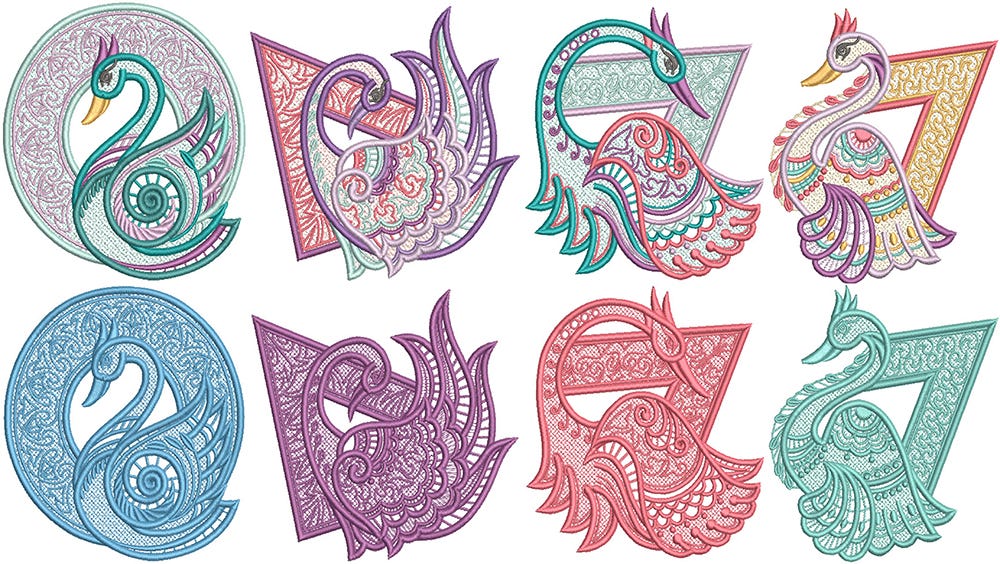 A third set of 4 elegant free standing lace exotic bird designs! Includes option for single or multiple thread colors.