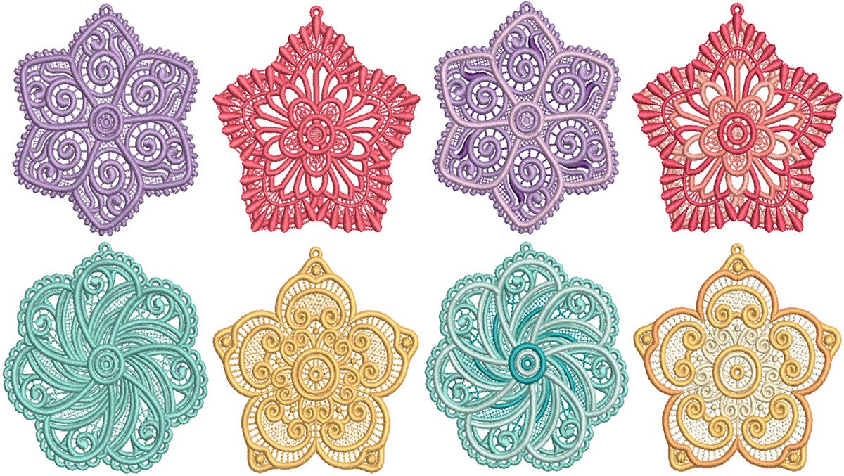 4 MORE pretty, floral free standing lace designs! Single color and multicolor option included.