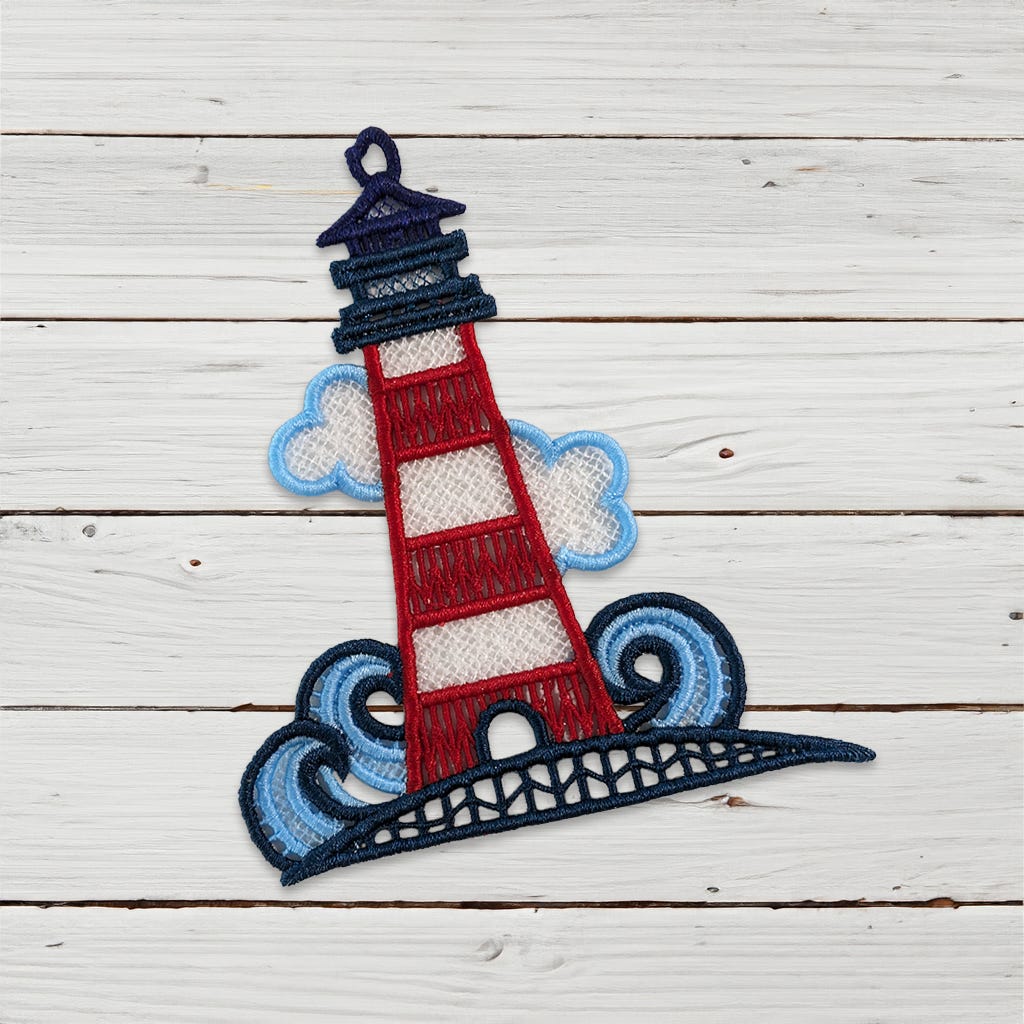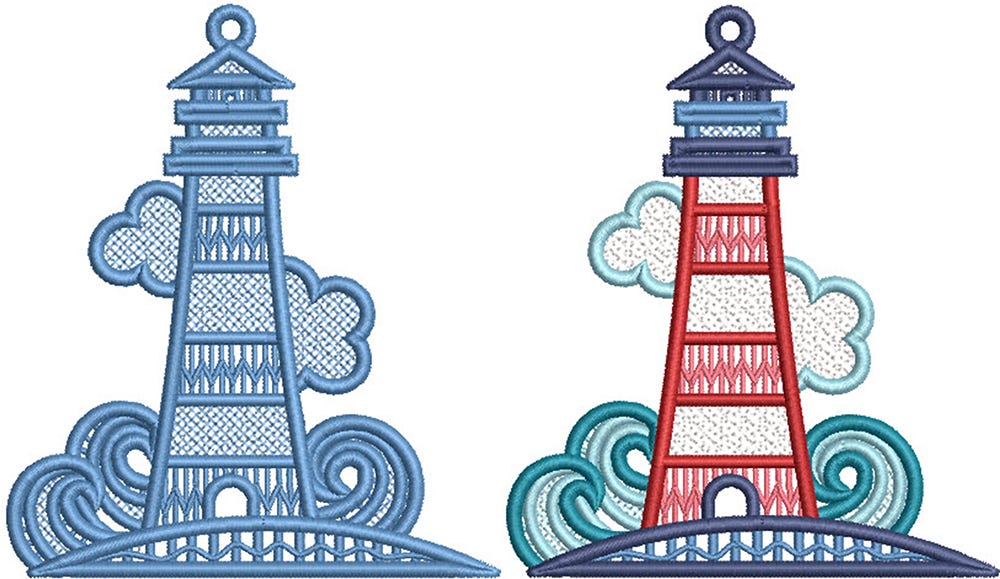 Standing tall as a beacon as the clouds and waves roll in, this Lighthouse Free Standing Lace design includes option for single or multiple thread colors.