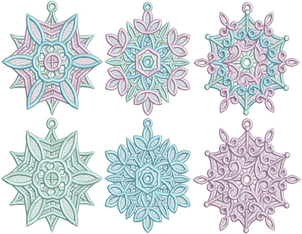 3 elegant free standing lace snowflakes! Includes option for single or multiple thread colors.