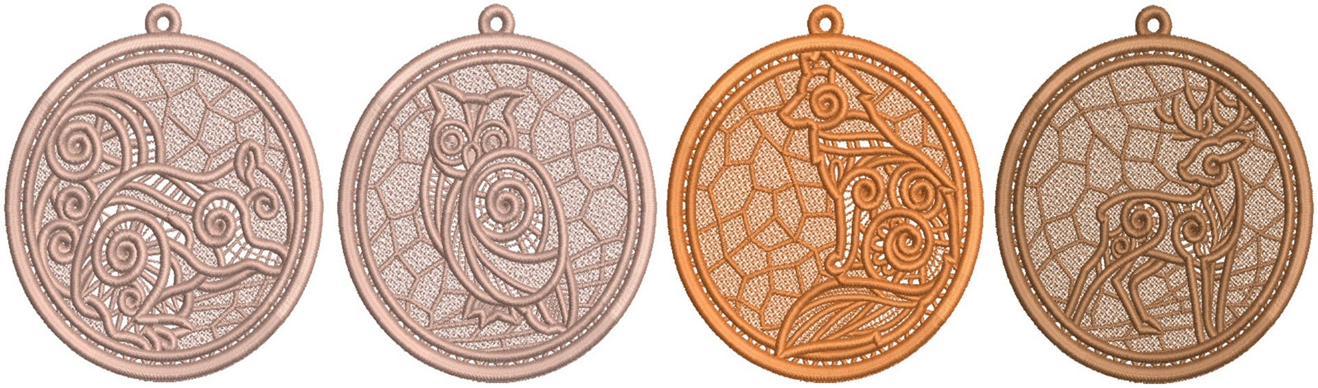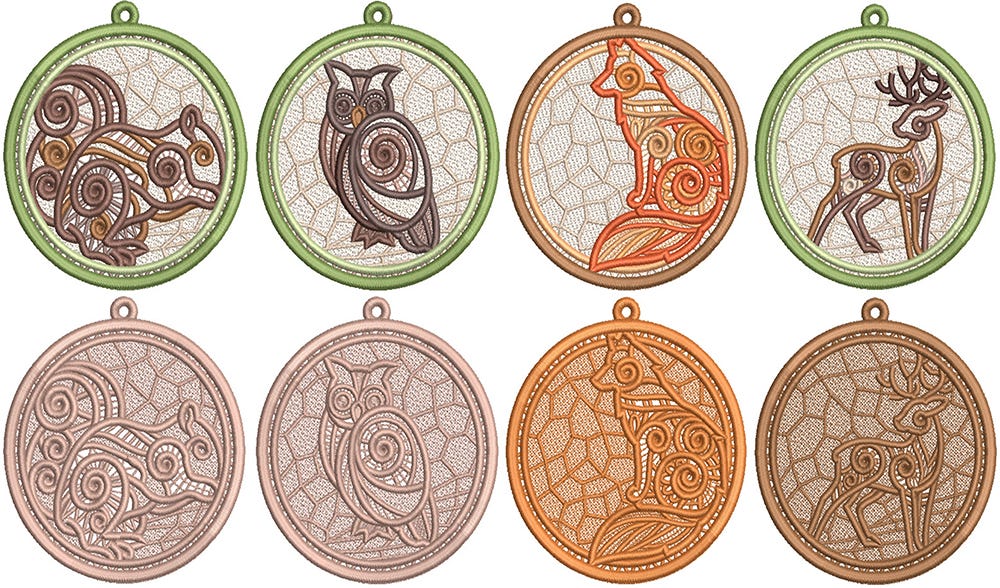 4 more woodland animals in a free standing lace circle - fox, owl, deer and squirrel! Includes option for single or multiple thread colors.
