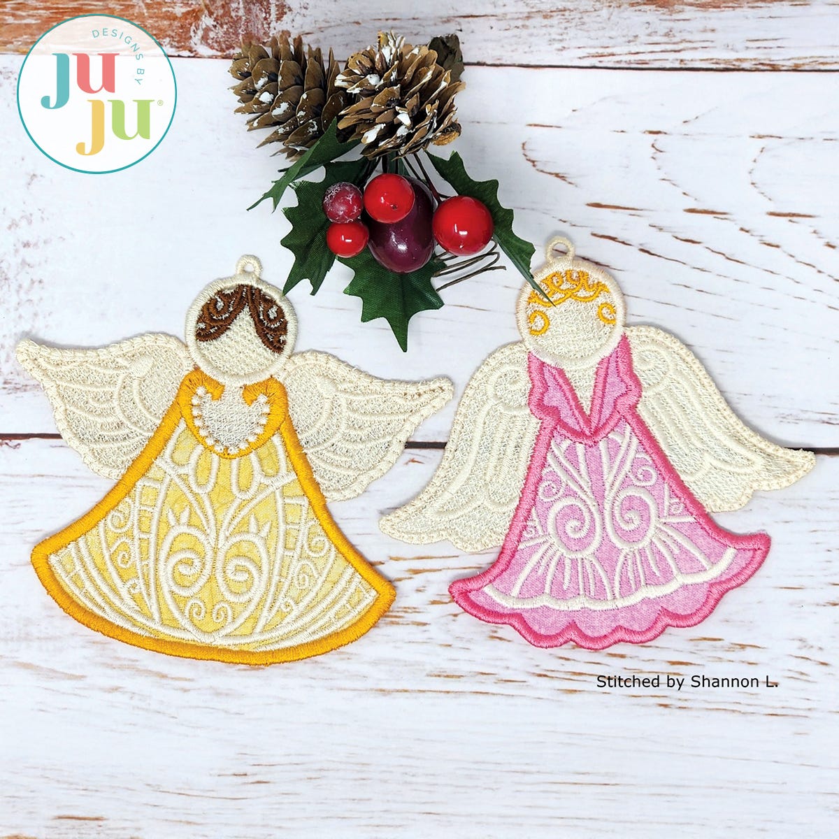 Designs by JuJu recommends the user friendly Embrilliance embroidery editing software to type out fonts in BX format, combine/merge designs, personalize and customize projects and more! Check out their programs Essentials, Enthusiast, StitchArtist , and Thumbnailer to learn more about their other useful, fun and easy features!