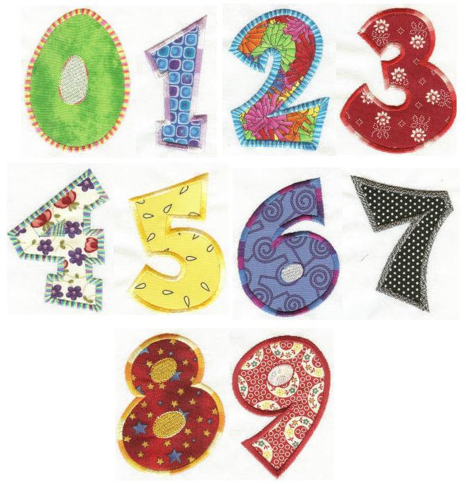 We are proud to bring you a great, fun n' funky applique number set. This set coordinates with our latest release "Fun Applique Alphabet" Each number comes in 2 sizes: approx 2.5 inches tall and 3.5 inches tall. This set is fabulous for a wide variety of projects from clothing to towels to totes, room decor, quilts and more! They are great for birthdays and would go wonderfully with our latest yummy and hot selling "Cute as a Cupcake Applique" set! They sew out beautifully and quickly.