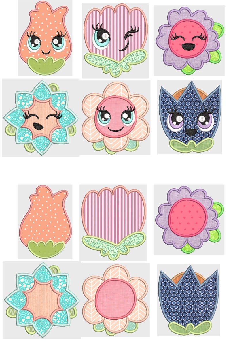 6 cute flower designs with fun faces. Also including the same 6 flower designs without faces!