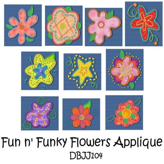 Fun n Funky Flowers Applique machine embroidery designs collection