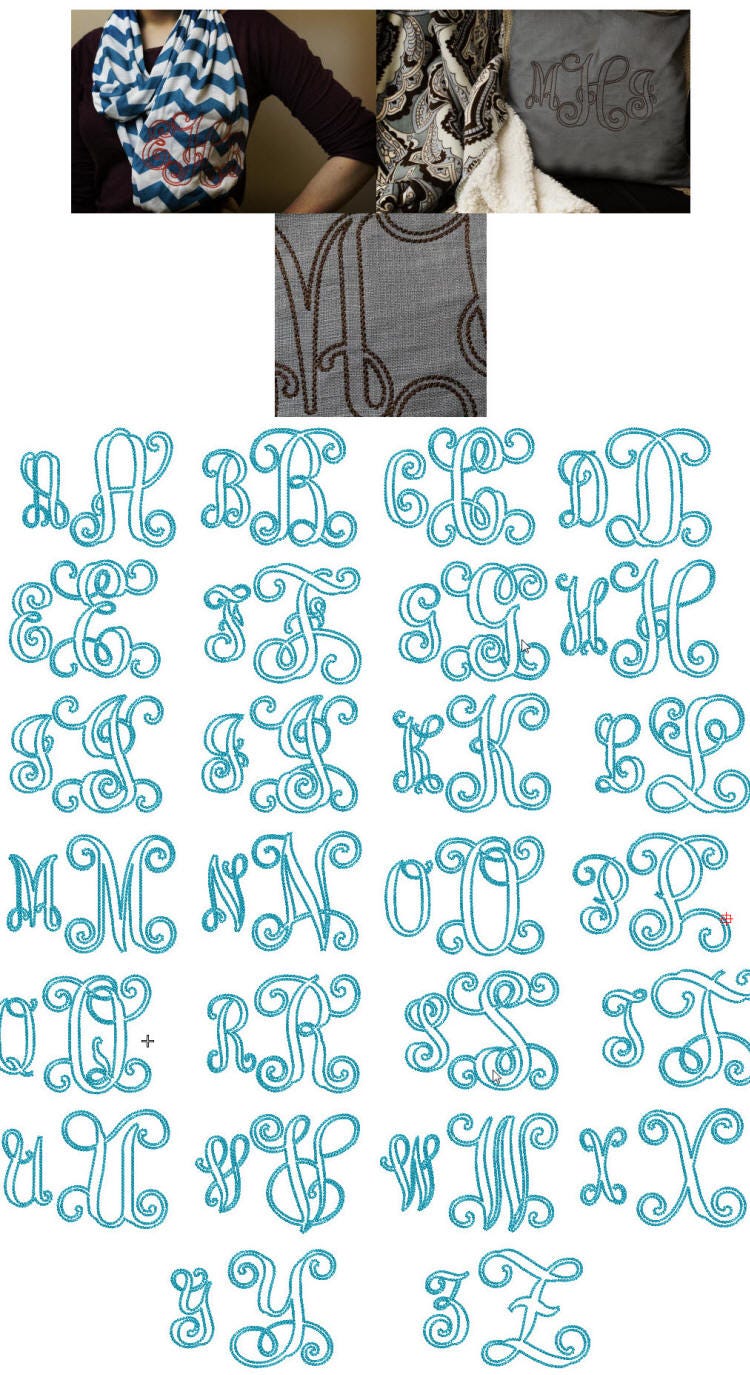 **you will need to utilize your embroidery software to merge the letters together to form your monograms**