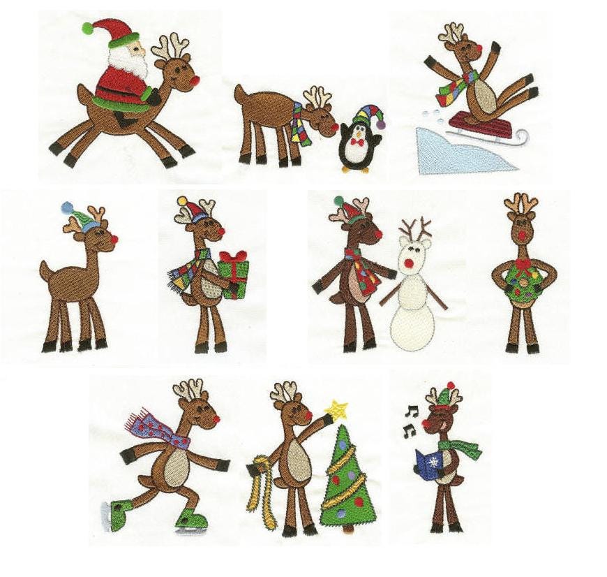 Here are some super cute n' funky reindeer to adorn your Christmas projects. Get going on your holiday sewing with these cute, festive, red nosed reindeer!