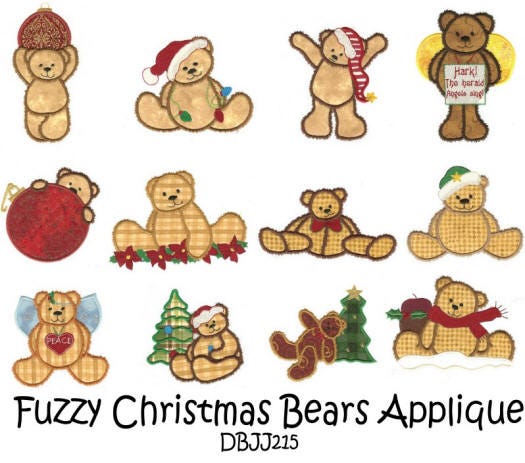 12 sweet, warm and fuzzy teddy bears decked out for Christmas done in applique.Ā You will love these!