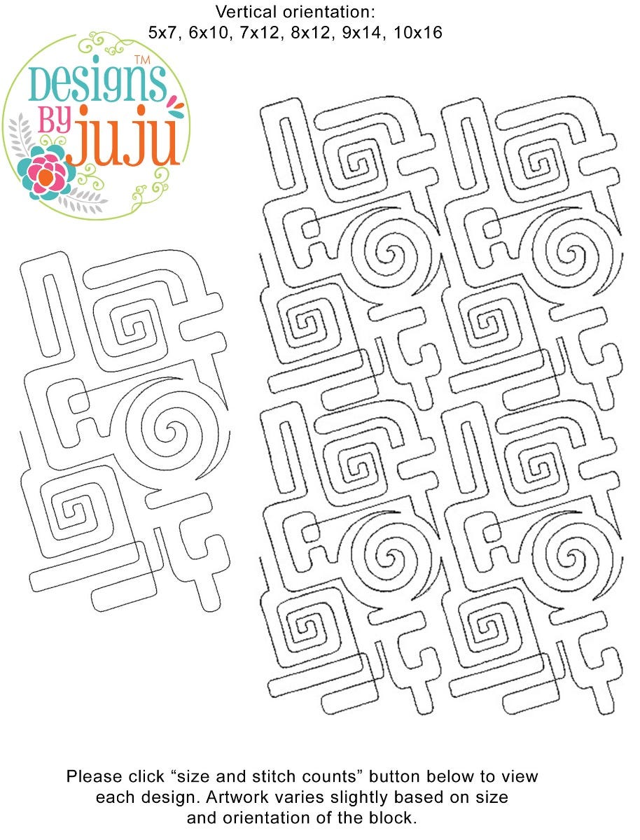 Each one of our End-to-End Quilting™ embroidery designs is an originally created design available in a large variety of block sizes. Every block is one continuous single-run line running edge to edge beginning on the left and exiting on the right. There is NO backtracking or double stitching. Each size block has been engineered and manually digitized by our team for EXACT edge-to-edge quilting precision so that when they are aligned properly in your hoop, you cannot tell where one block ends and the next one begins! ADDITIONALLY, the art has been created for each size so that when the rows are stacked on top of each other, it provides a practically seamless, professional, allover quilting effect that mimics (E2E) pantographs so you can do edge-to-edge quilting on your embroidery machine!