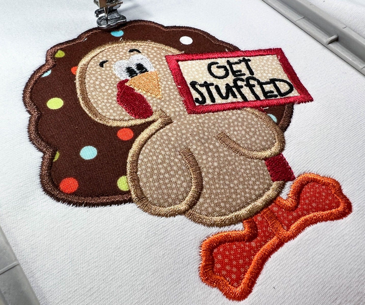 Please note a 4x4 size is NOT included. The "Get stuffed" text is included in the design file, as picture.