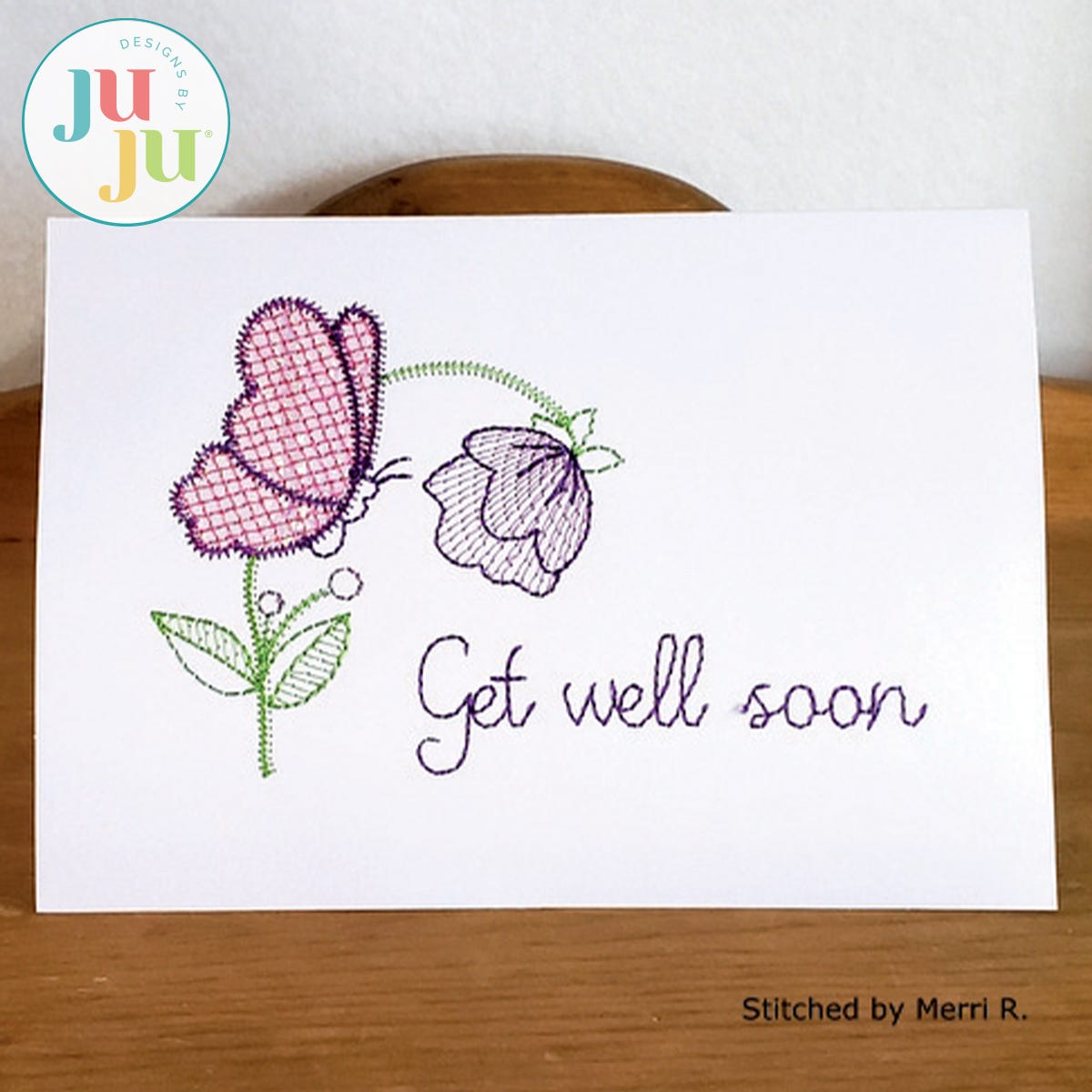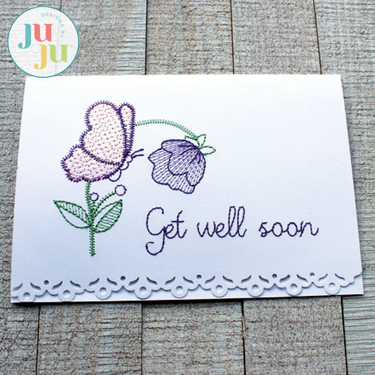 This embroidered Get Well Card for your embroidery machine was digitized to be stitched on your cardstock or blank greeting cards.