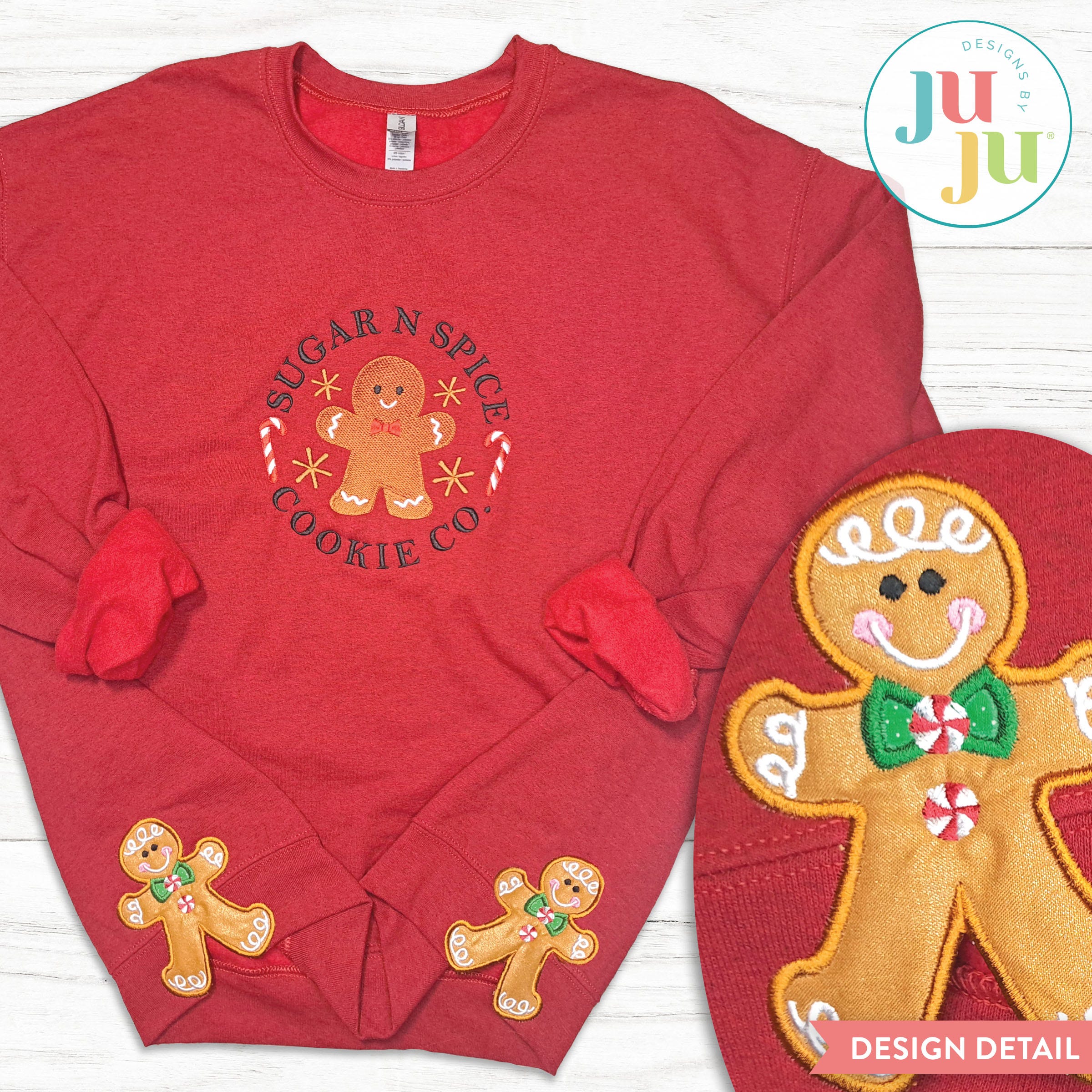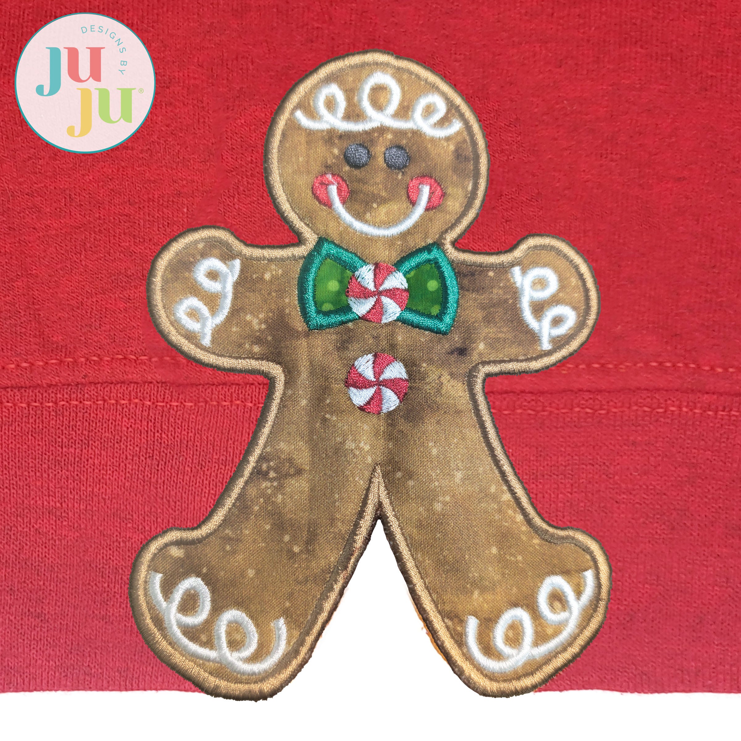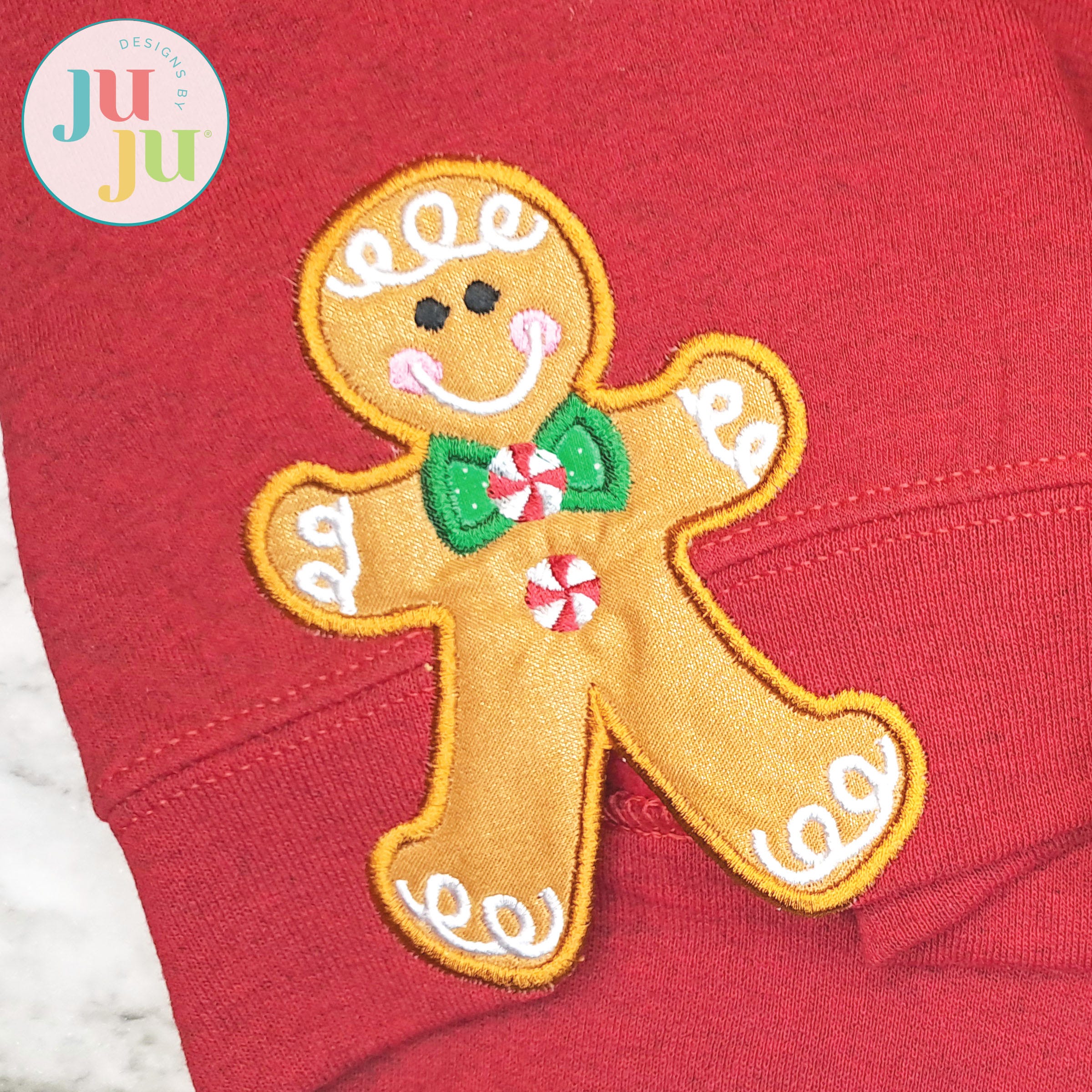 If you like the trendy side seam bow applique craze, you are going to love this Gingerbread Boy design! Make a sweet tee or sweatshirt for Christmas!