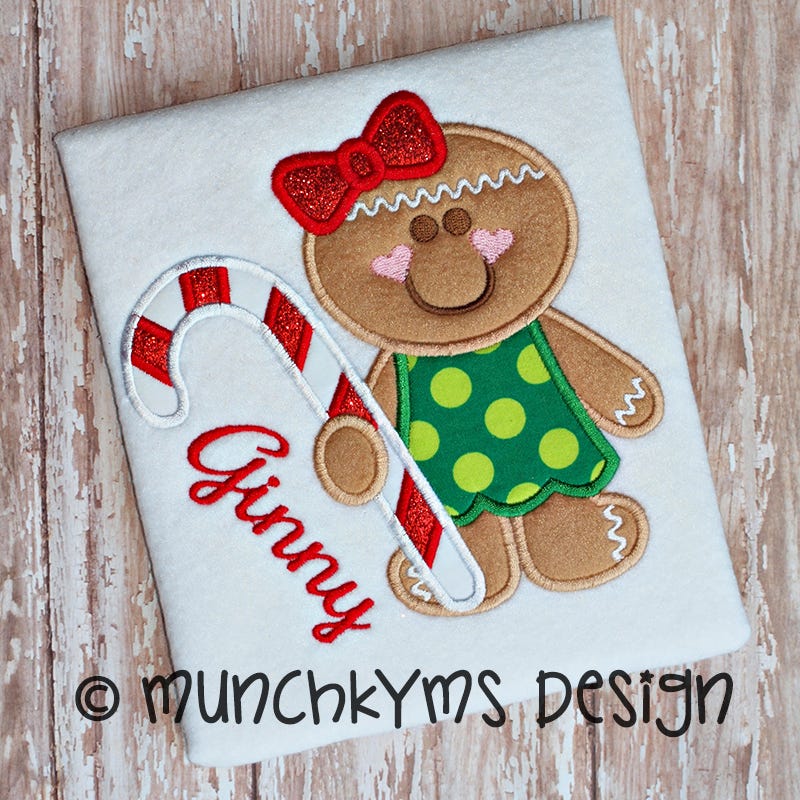 Gingerbread Girl Candy Cane Applique