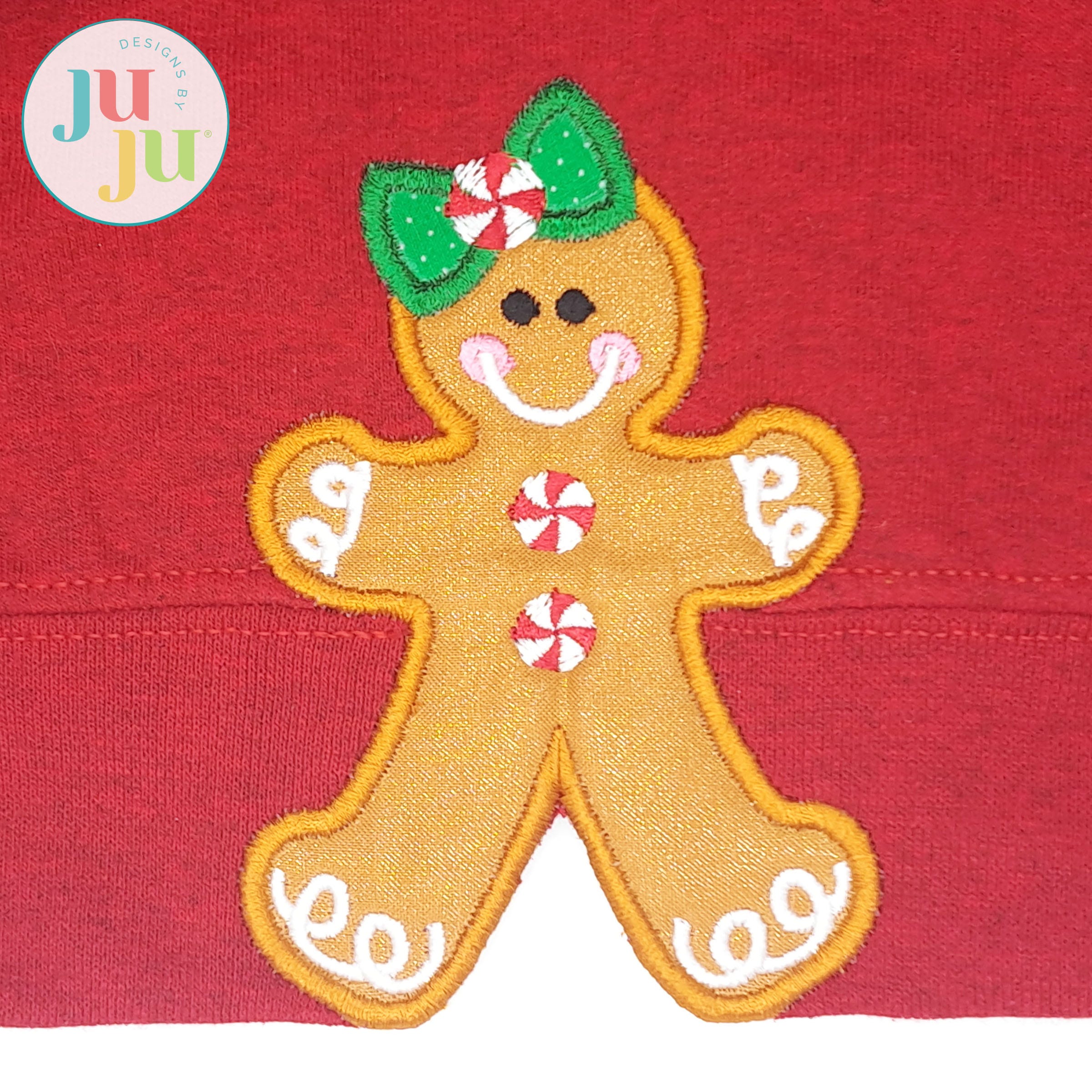 If you like the trendy side seam bow applique craze, you are going to love this Gingerbread Girl design! Make a sweet tee or sweatshirt for Christmas!