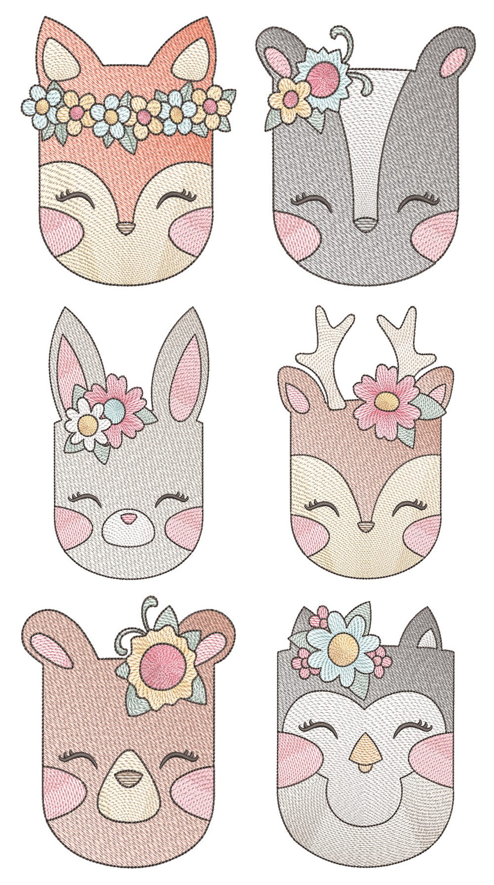 6 precious girl woodland animals in our super sweet "sketched" style.