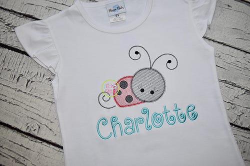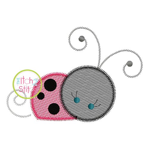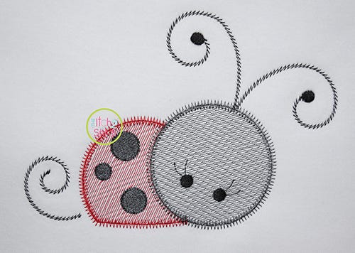 This design is not applique nor a traditional fill. The light and airy sketch fill pattern allows for a quick stitch out. The sketch fill shapes are finished with a zigzag outline.
