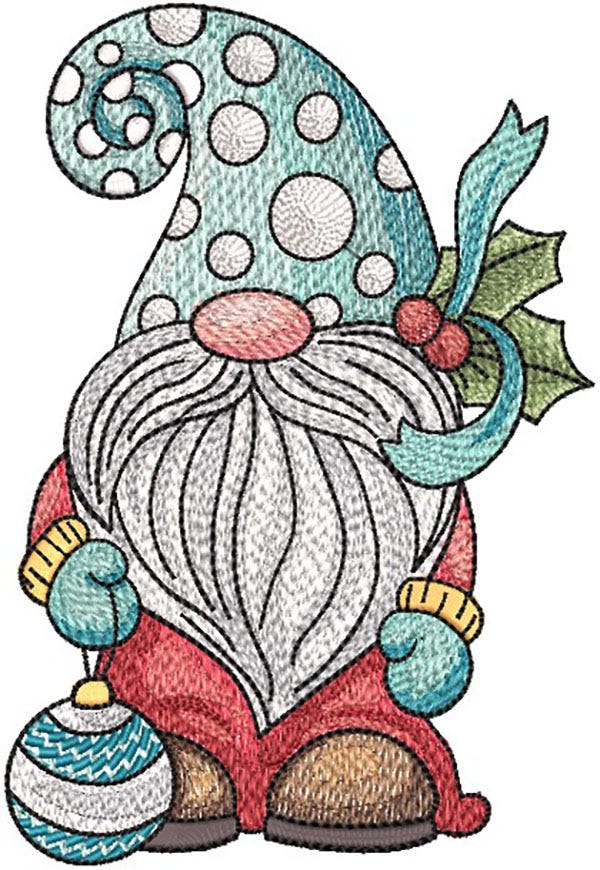 One adorable Christmas gnome design for you! This single design features multiple color layers of lighter density fill to create a blended, variegated, textured look.
