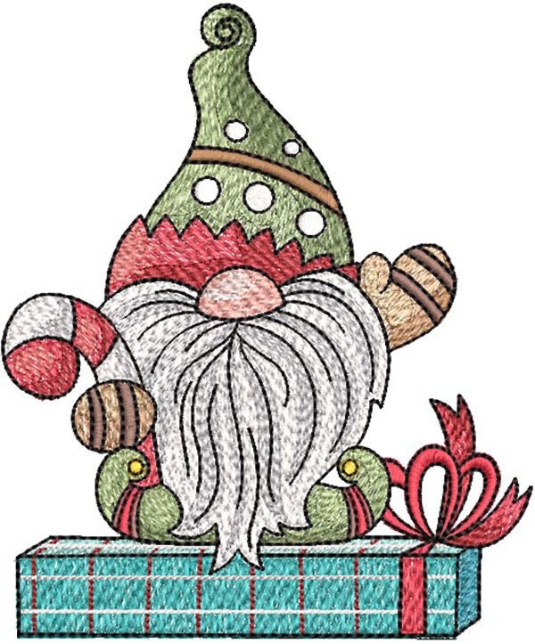 One adorable Christmas gnome design for you! This single design features multiple color layers of lighter density fill to create a blended, variegated, textured look.