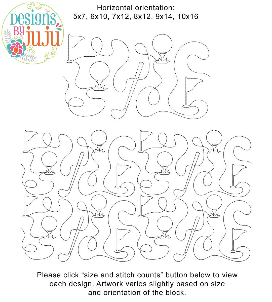 Please note: Both the scale of each pattern and arrangement of the motifs may vary based on the hoop size. Please click the "Size and Stitch Count" button to view the artwork for each size.