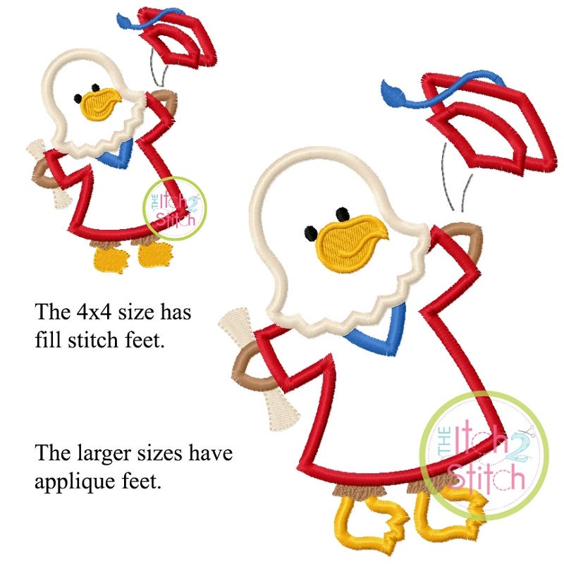 Please note the 4x4 size has some extra fill stitch sections.