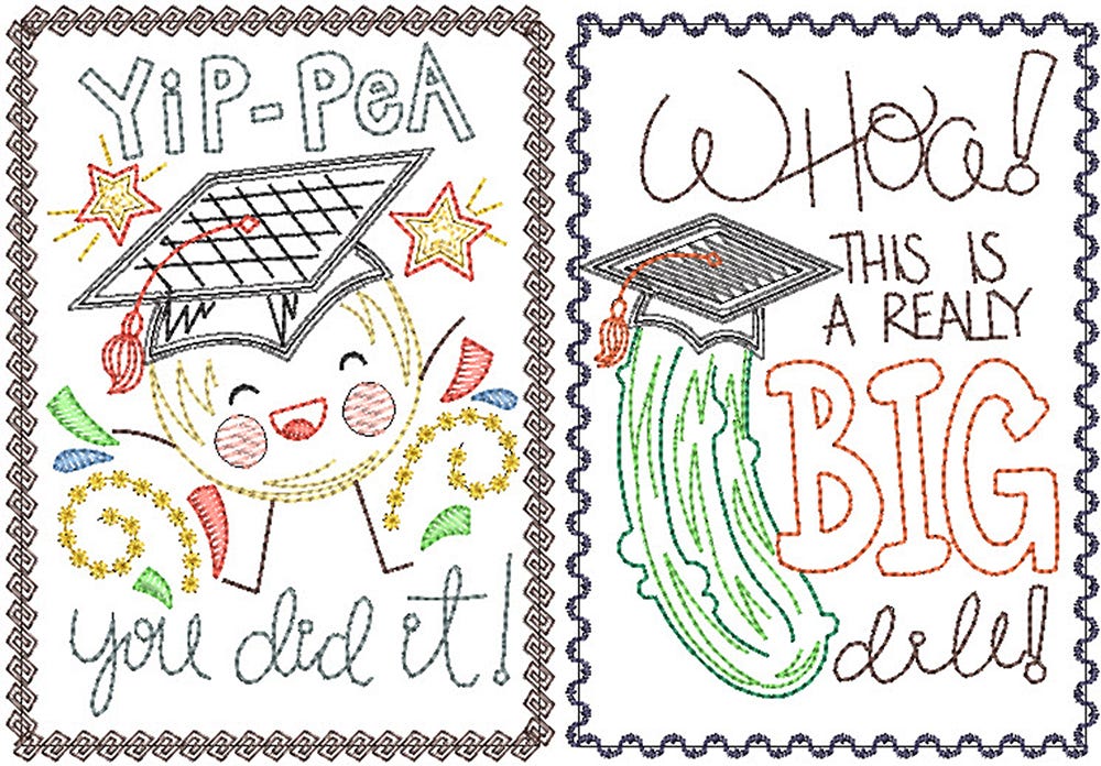 Two playful greeting card designs to celebrate to the new graduate! 2 sizes included: 4x6 and 5x7