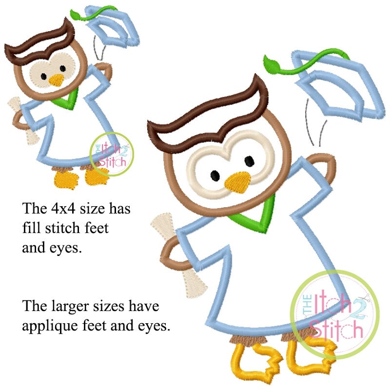 Please note the 4x4 size has some extra fill stitch sections.