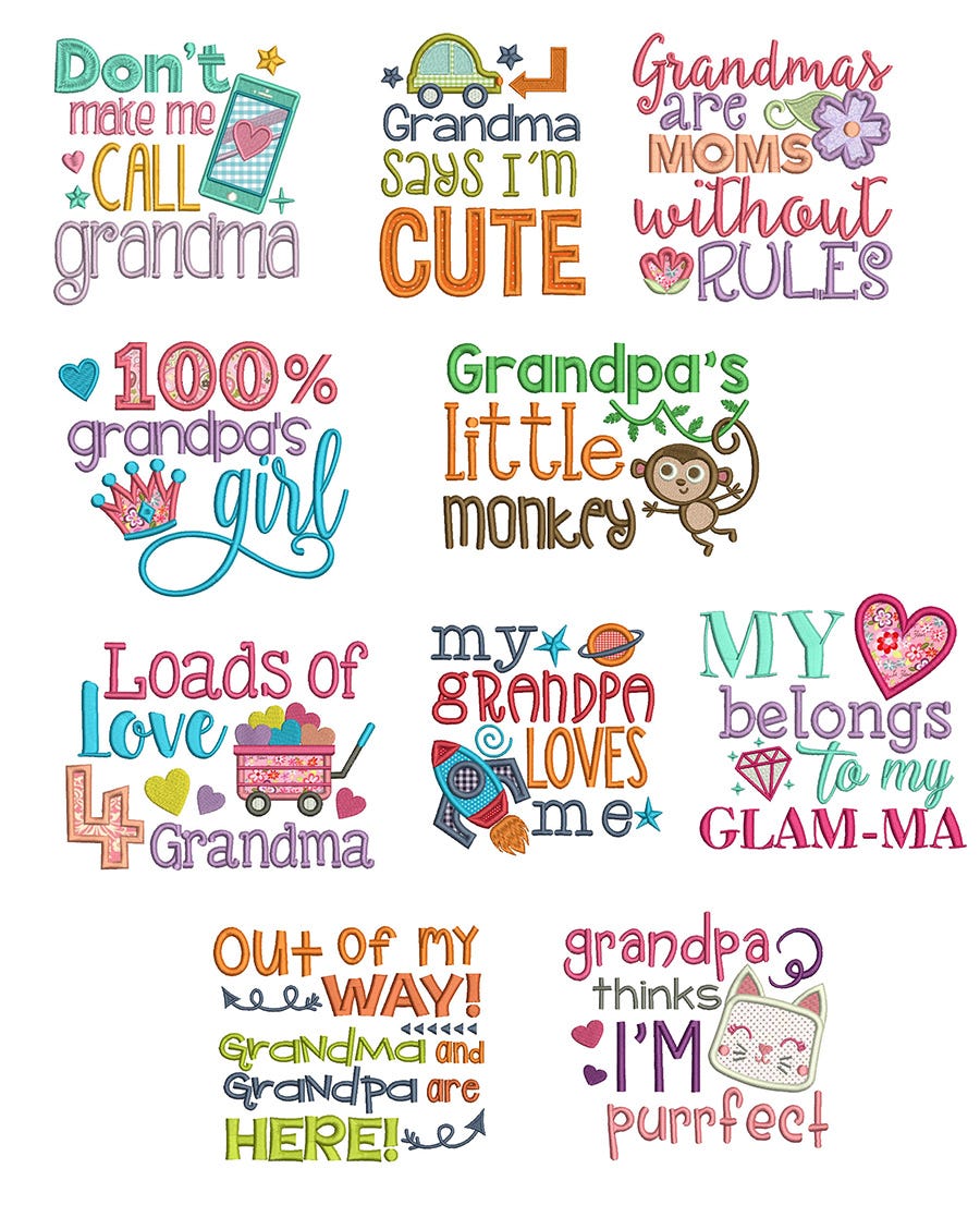 10 sweet sayings for all the loving grandparents out there! Please note many of the designs with the exception of 2 have a small applique component.