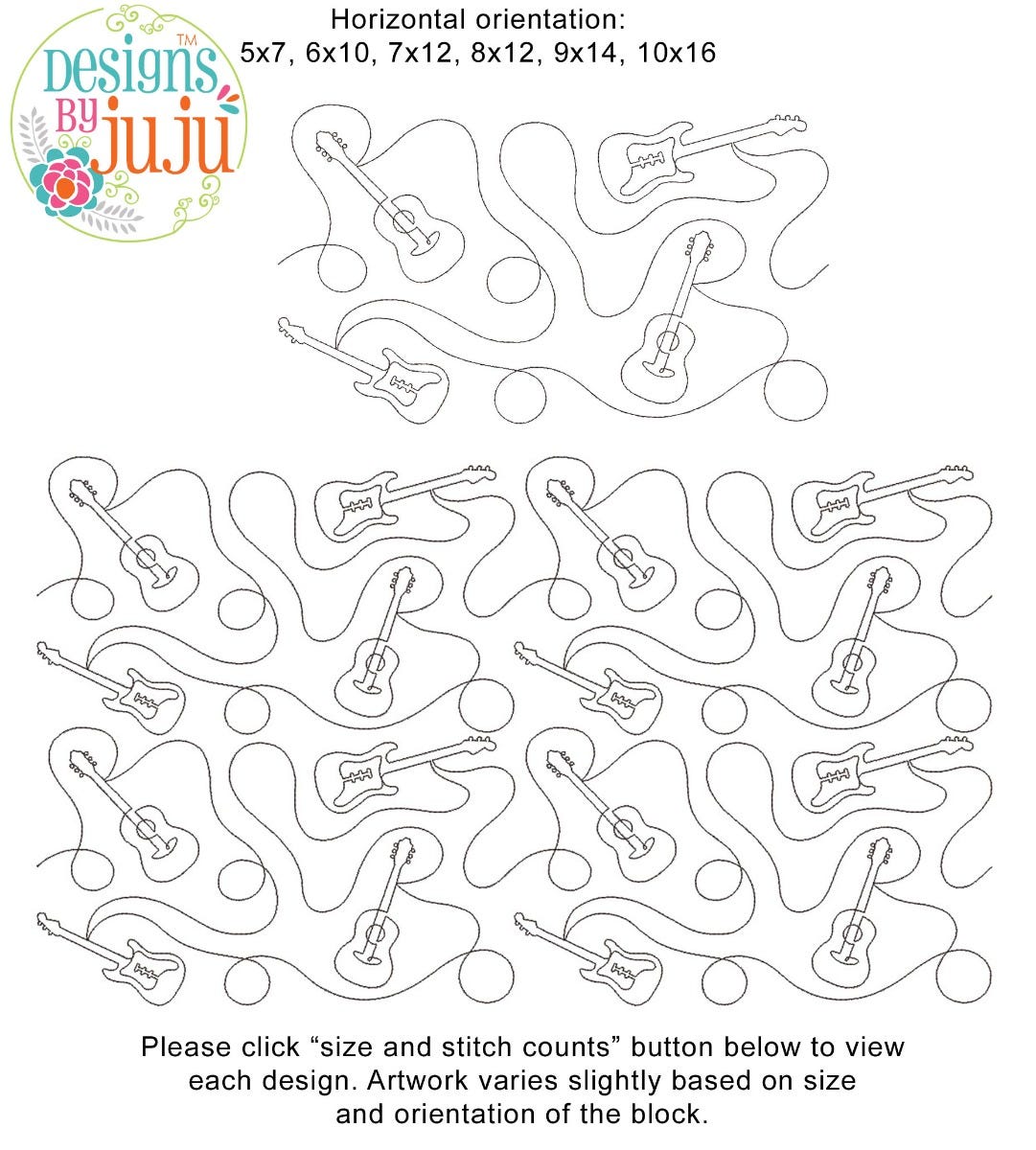 Please note: Both the scale of each pattern and arrangement of the motifs may vary based on the hoop size. Please click the "Size and Stitch Count" button to view the artwork for each size.