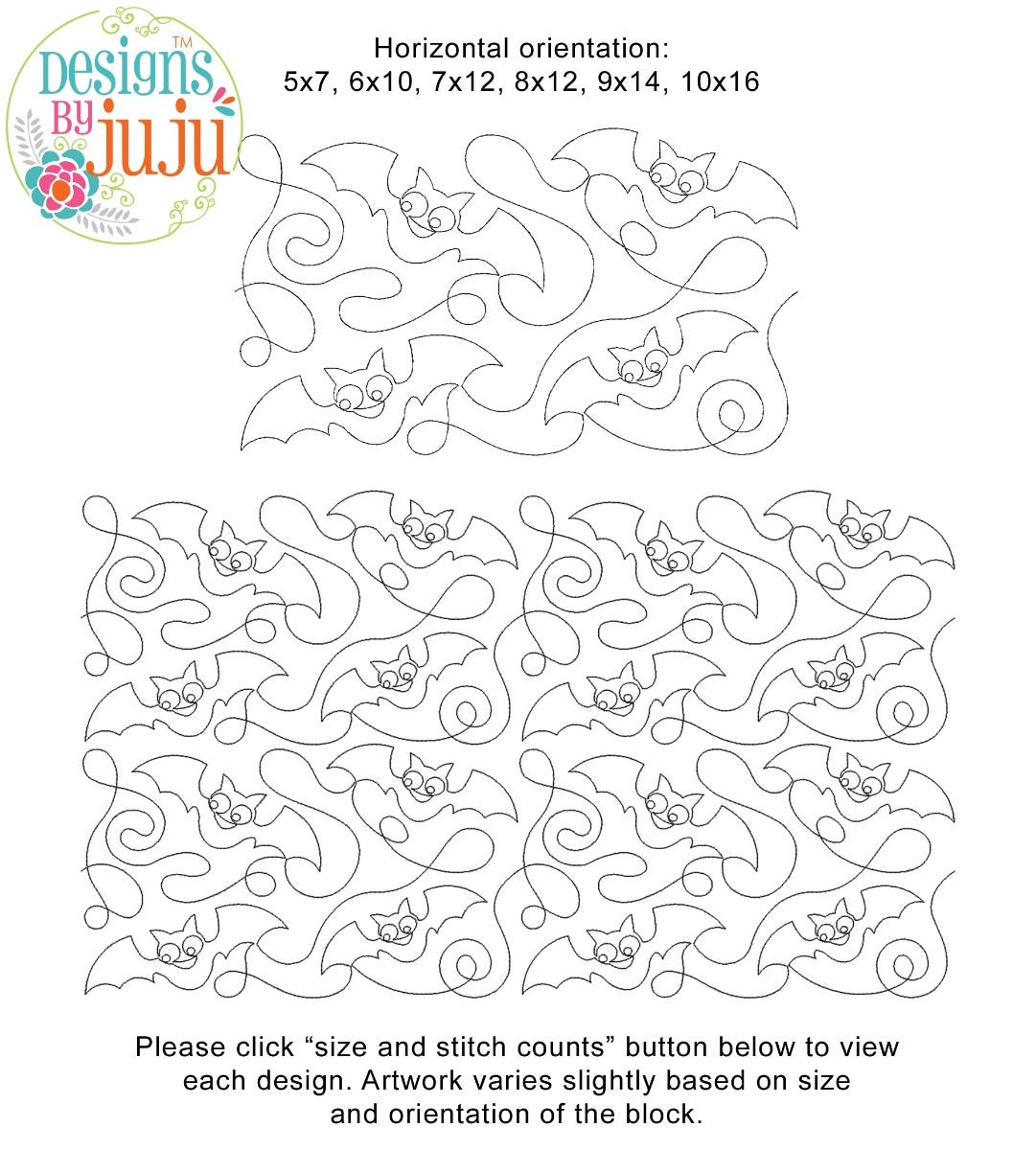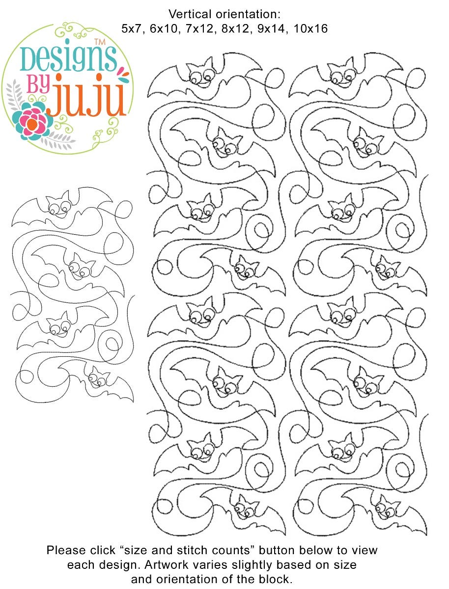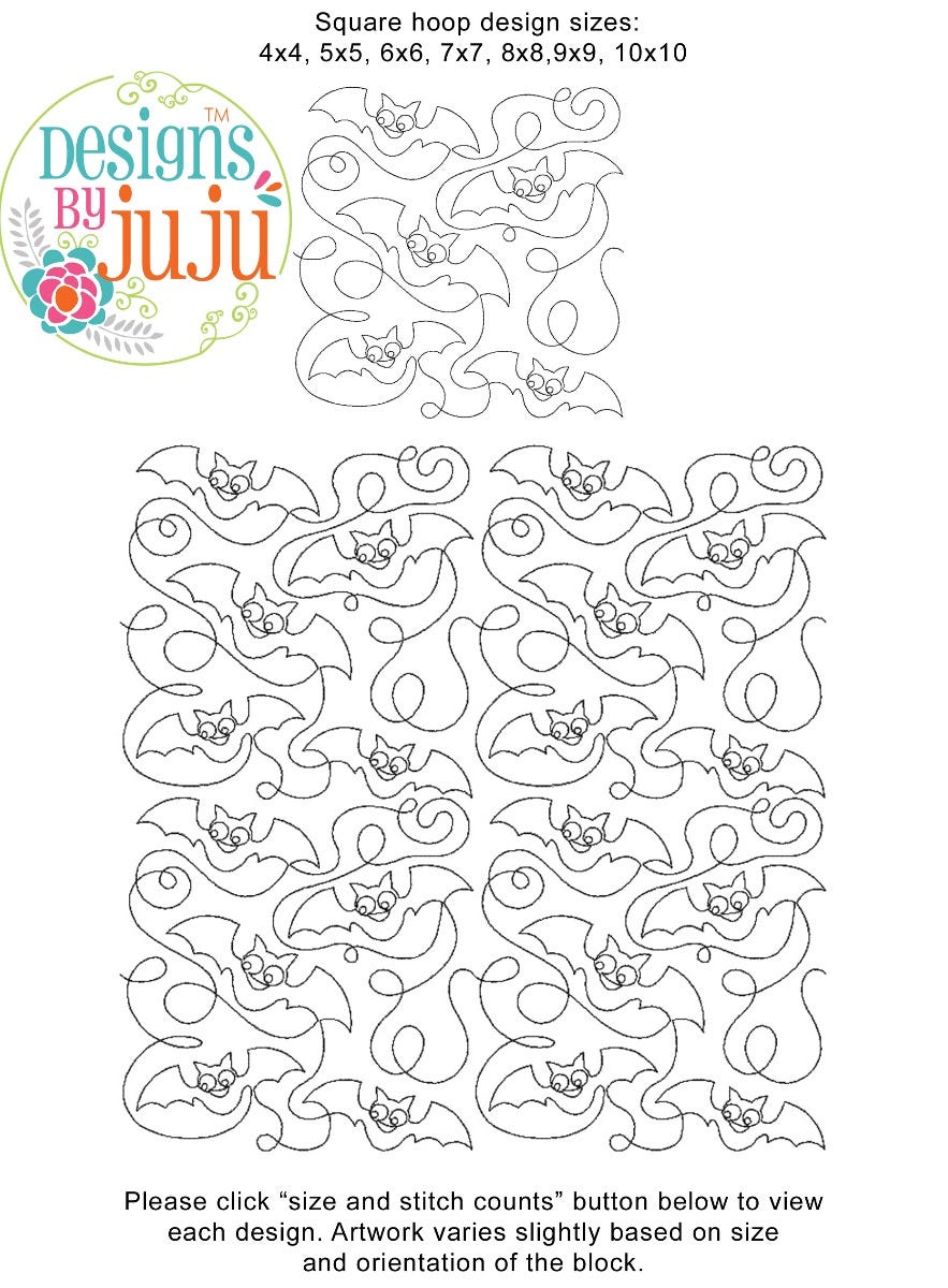 Please note: Both the scale of each pattern and arrangement of the motifs may vary based on the hoop size. Please click the "Size and Stitch Count" button to view the artwork for each size.