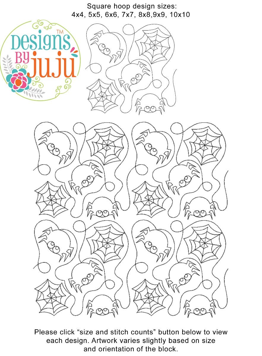 Please note: Both the scale of each pattern and arrangement of the motifs may vary based on the hoop size. Please click the "Size and Stitch Count" button to view the artwork for each size.