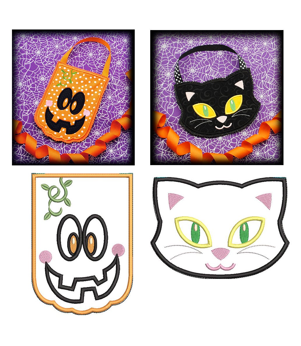 Set 2 of our adorable and easy to make in the hoop Halloween treat bags: Pumpkin and Black Cat