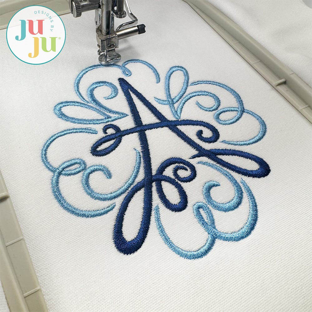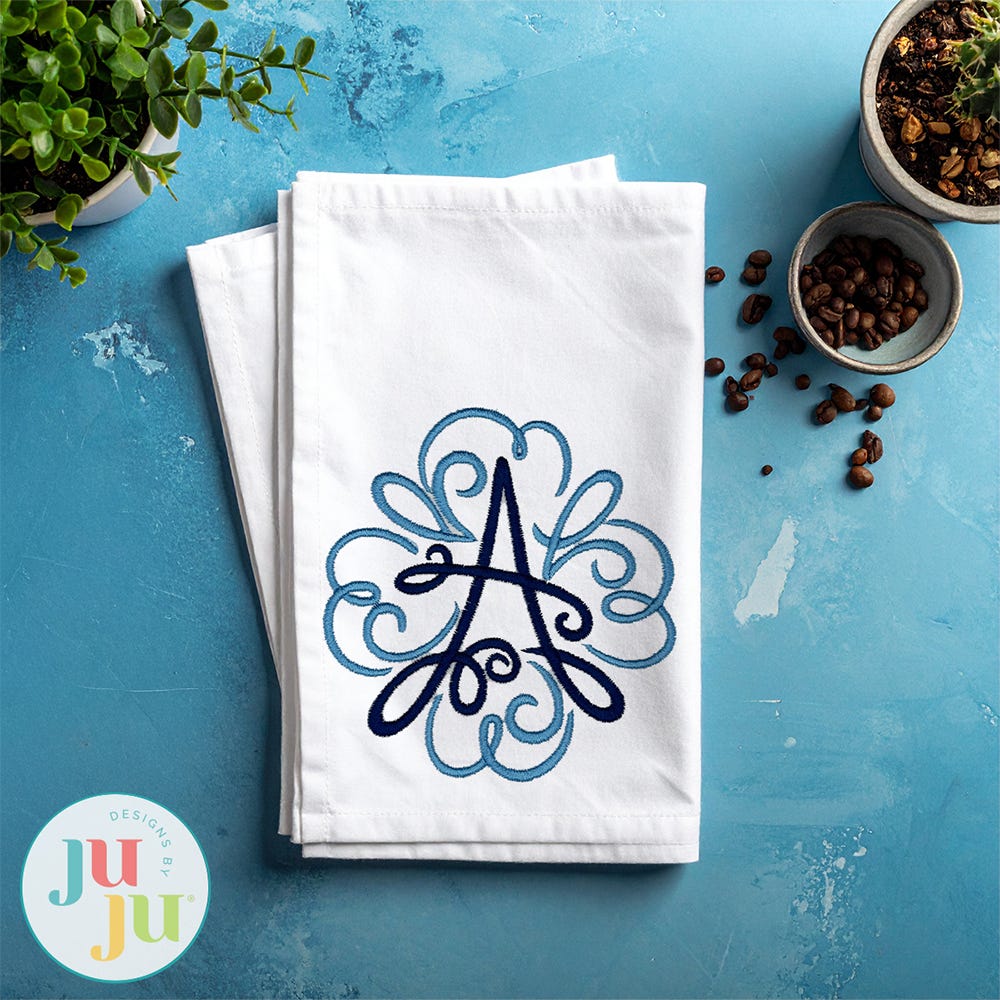 Add a touch of hand-drawn whimsy to your projects with our Hand Swirled Monogram. This embroidery-only monogram features lovely script letters surrounded by beautiful decorative swirled frames.