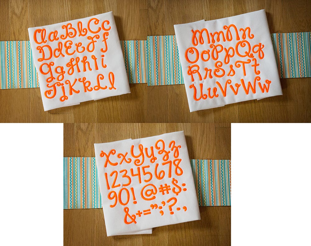 A fun and cheery script font that is nice and bold. Ā All of our font alphabets are 100% manually digitized to bring you maximum stitch quality.