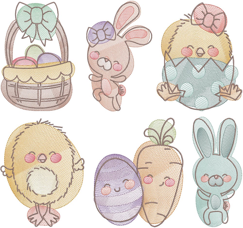 6 precious Easter pals in our popular āsketchedā style!
