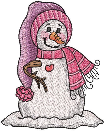 One adorable whimsical snowman design for you! This single design features multiple color layers of lighter density fill to create a blended, variegated, textured look.